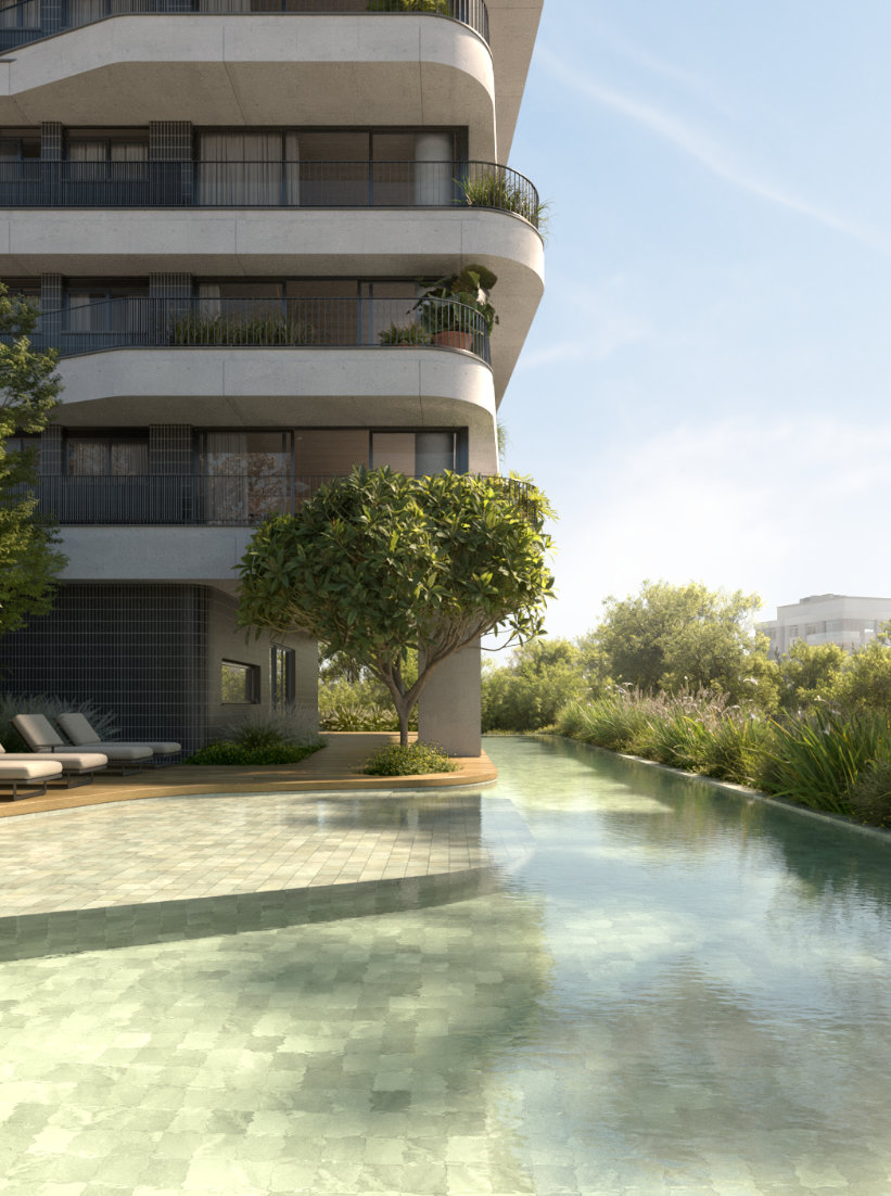 Marcado por volumes ondulados e pilares diagonais, o edifício convida a um olhar atento. Suas linhas escultóricas revelam nuances a cada passo, como se a forma respondesse ao movimento de quem a observa.
